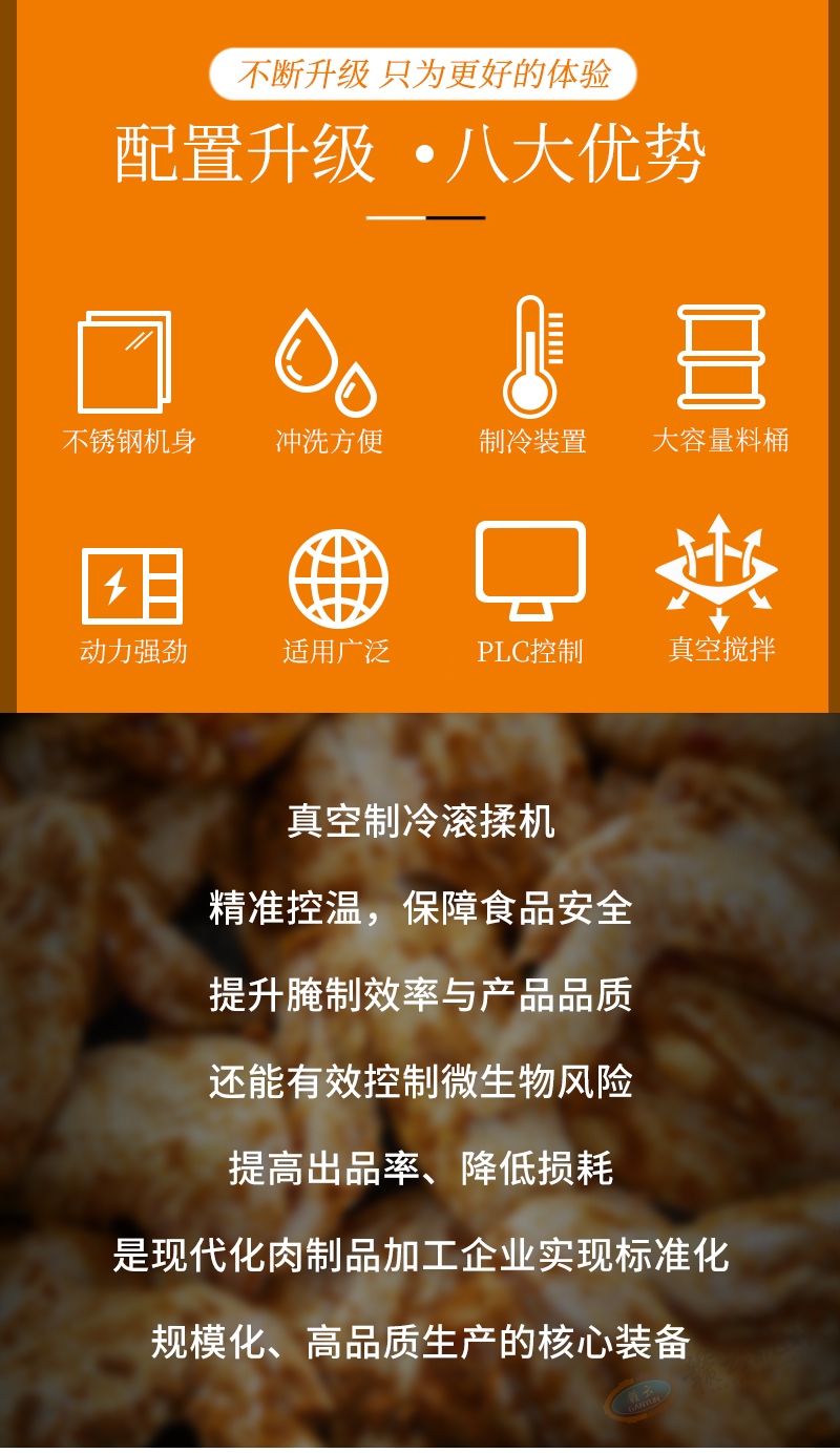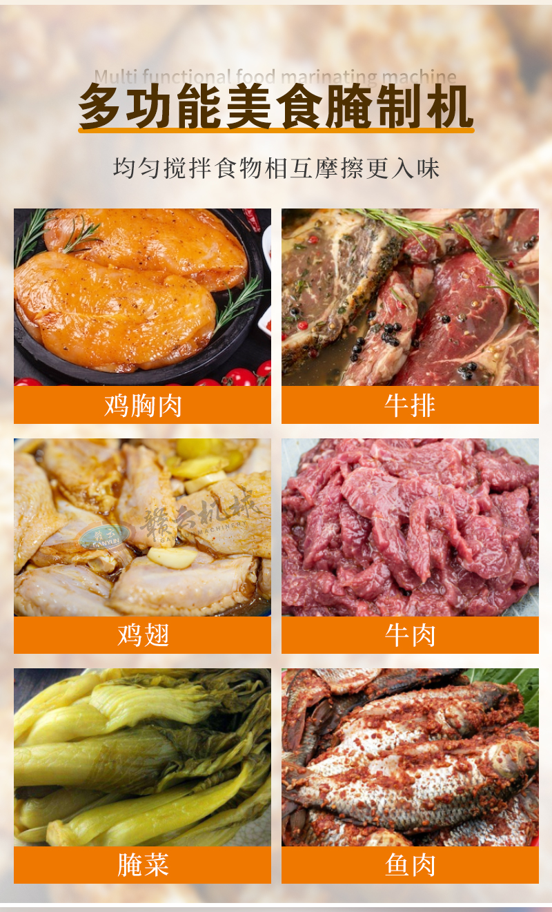 用于雞、鴨、魚、牛肉等食材高效腌制,制冷鎖鮮+PLC控溫,助力標準化生產降損耗。