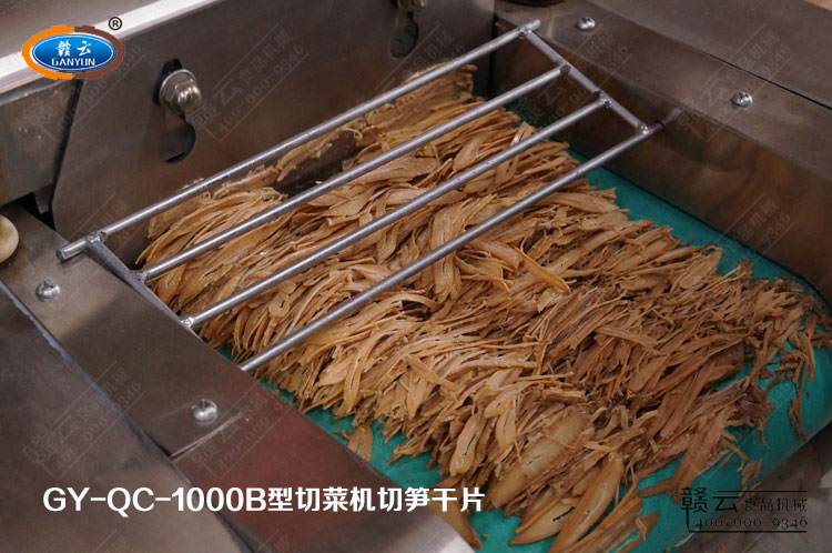 贛云牌多功能切菜機切筍干的視頻演示于2012年10月9日下午拍攝完成,并制作成視頻上傳,歡迎切筍干、筍絲加工需求的客戶參考,筍絲切片厚薄可調范圍0-20毫米,筍絲寬度的控制,可事先將較大筍干對半切開。多功能切菜機不可直接切筍干,需將筍干在清水中浸泡48小時以上,視頻拍攝時筍干浸泡了三天。視頻中還列舉出了多功能切菜機切其他產品,如:切年糕片、靈芝片、辣椒丁、豆干絲、燙皮絲、牛肚、青菜絲、胡蘿卜丁等,視頻效果或圖片效果請查看相應新聞或產品操作視頻。