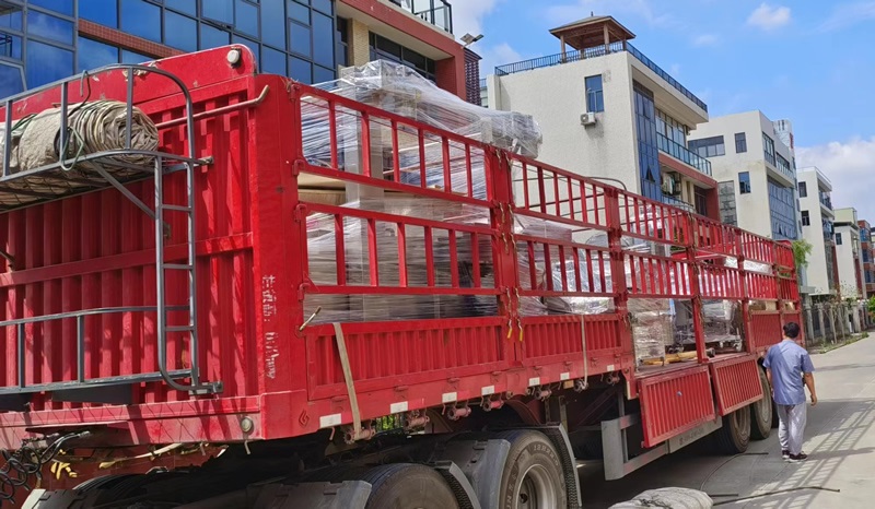 2023年5月27日,在贛云機械廠區內,叉車發出轟鳴聲,發貨部的師傅和叉車師傅正在熱火朝天的將小酥肉油炸生產線設備裝車,整條生產線將由專車發往湖北客戶。