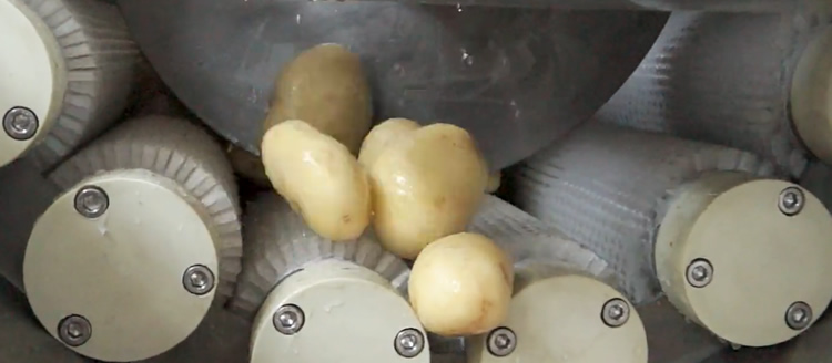 清洗干凈后,打開出料閥門,用塑料筐收集好去皮清洗的土豆。