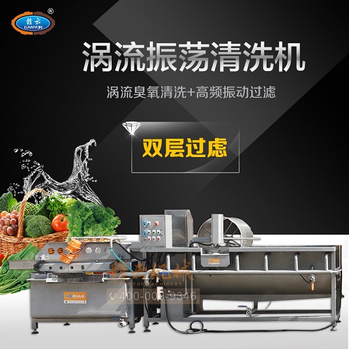 渦流清洗機是我公司開發的一款新型的水果、蔬菜清洗加工機械。這臺設備與常規款設備有2大不同點,一、小水箱加去雜裝置,可以把清洗時排除的物料殘渣排出到設備外面,二、本機采用聚酯絲網帶輸送,解決了金屬網帶在運行過程中因摩擦而產生的黑水和金屬碎屑現象。整體設備故障率低,結構緊湊,操作方便,對果蔬清洗效果好,不損傷物料,而且濾水性好,產能高。