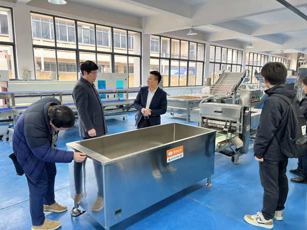 在張繼云董事長的陪同下,吳所長一行參觀了公司展廳,深入了解肉類自動化加工設備、果蔬高效處理生產線等核心產品的功能與應用場景。重點介紹了設備在降低人力成本、提升加工效率方面的創新設計。