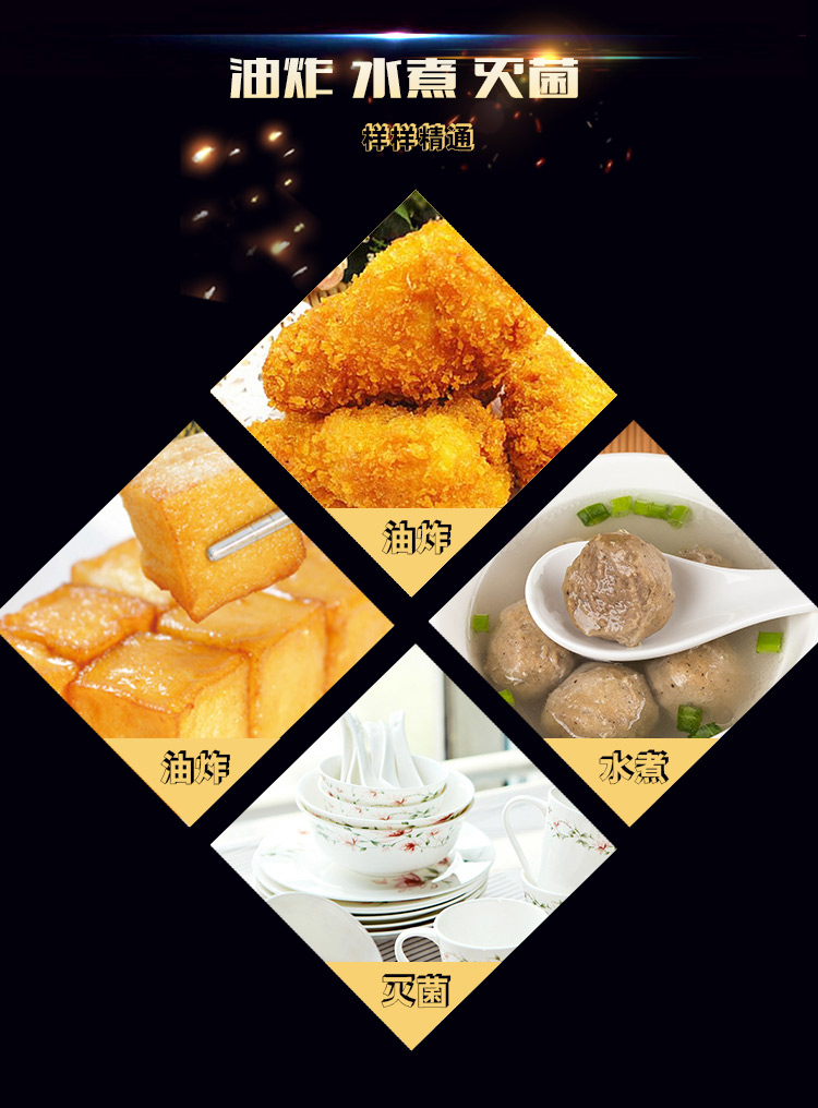 丸機、墨魚丸成型機、獅子頭成型機、雙調速肉丸機、火鍋丸子機組等多種肉丸成型設備使用。可加油,用于油炸丸子的定型、熟化,可加水,