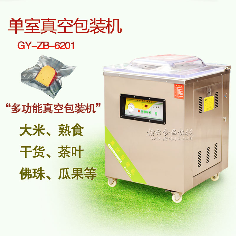 其次,要保證真空包裝機對產品進行包裝時有充分的抽氣時間,從而保證能將包裝膜內的空氣充分抽空,保證內部的真空度。封口控制時間未到不能過早進行封口,以避免包裝膜內殘留空氣的存在。封口的質量要有保證,封口要充分密實封閉,以避免漏氣現象的產生而影響真空包裝膜內的真空度。真空包裝機內部的核心部分是真空泵,工作時間一長,灰塵、贓物等就容易進入真空泵,使得被包裝產品粘上灰塵、贓物,此時就必須將真空泵換油。經常更換油,能增強真空包裝機的抽氣效果。還要注意對真空包裝機內部壓力氣囊的保護,防止其產生破裂,而不能達到良好的抽氣效果。