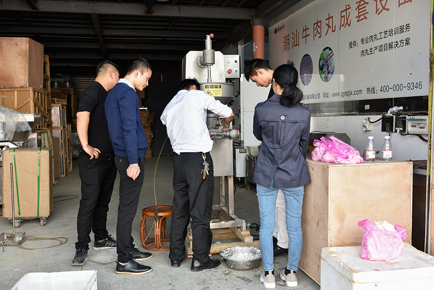 感謝湖南客戶對于贛云品牌的信任,看到贛云眉毛丸子成型丸子的效果后,立馬購買了該設備設備!并開心的表示,終于找到符合自家丸子的機器了,節省人工,高效量產的好辦法了,丸子規格也可以統一了!感謝信任,贛云不單單做質量過硬的設備,更是為您提供成套的解決方案!,技術人員按照客戶的要求,對機器進行調試,以達到客戶想要的眉毛丸子的效果,因每個地方,每個人對丸子的大小尺寸,成型效果要求不同,所以技術員按照客戶的要求,對肉丸成型機進行調整,丸子成型后,成型大小統一,粒粒分明,客戶也很滿意。