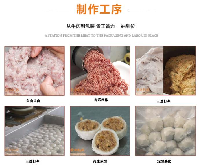丸子加工的成套設備有:魚肉采肉機——立式不銹鋼絞肉機——350型液壓式打漿機——第三代肉丸包心機(實心丸子、包心丸子、貢丸機器、多功能丸子設備)——溫控雙加熱水槽——雙室真空包裝機。