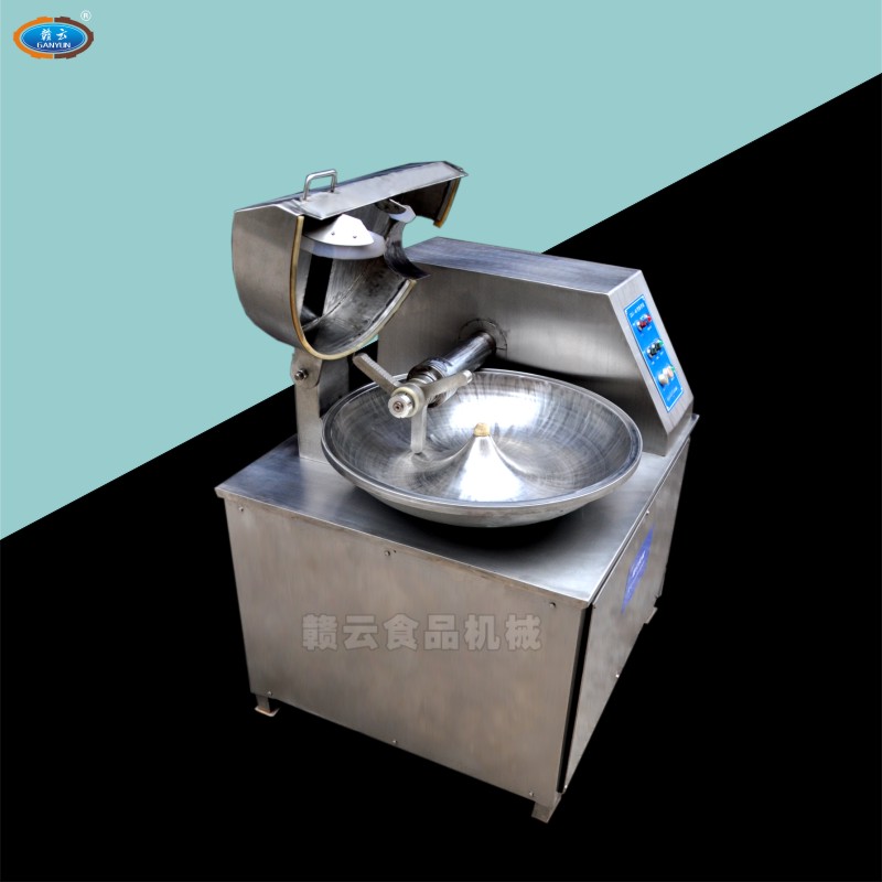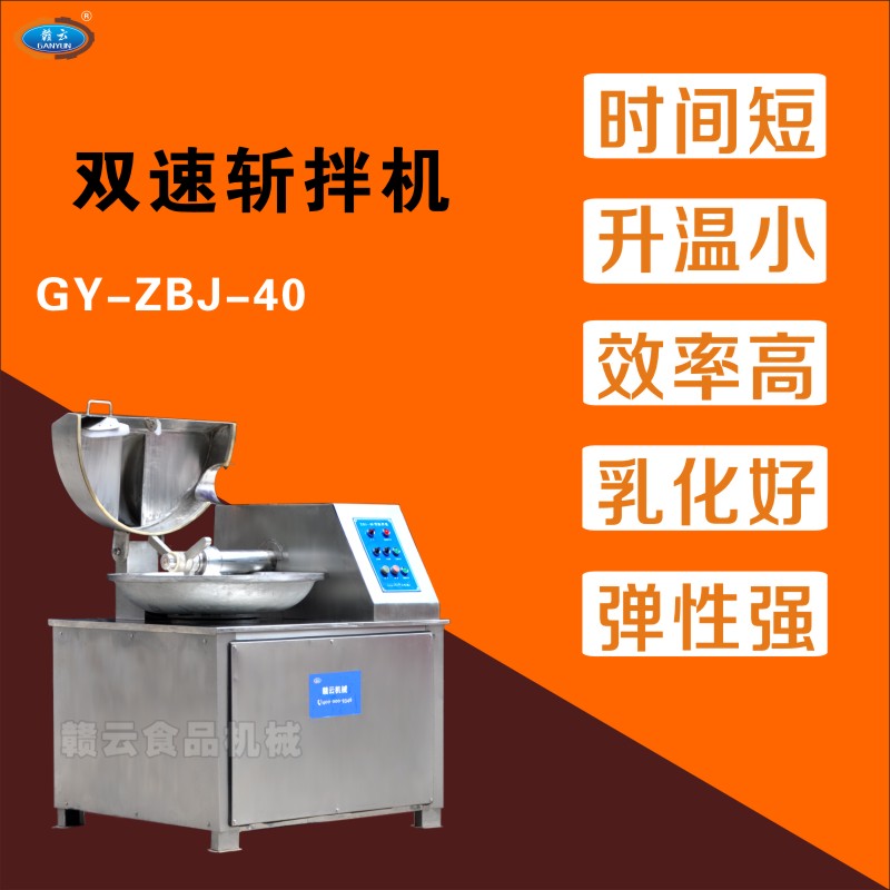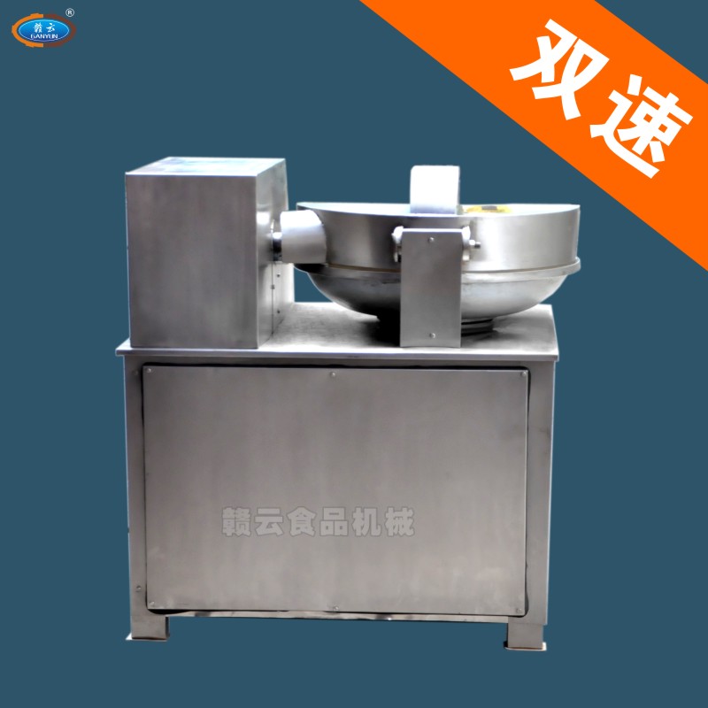 雙速斬拌機利用斬刀高速旋轉的捶打作用,將物料及輔料捶打成肉餡或肉泥。使物料的捶打時間短,溫升小,提高了物料的細膩度,可充分提取蛋白,使產品具有彈性強、乳化結果好、出品率高等特點。 她不但在肉類加工中有著高效的作用,而且能實現巧克力、杏仁蛋白軟糖、奶酪、水果等食品類的加工,有效保證產品的保質期。